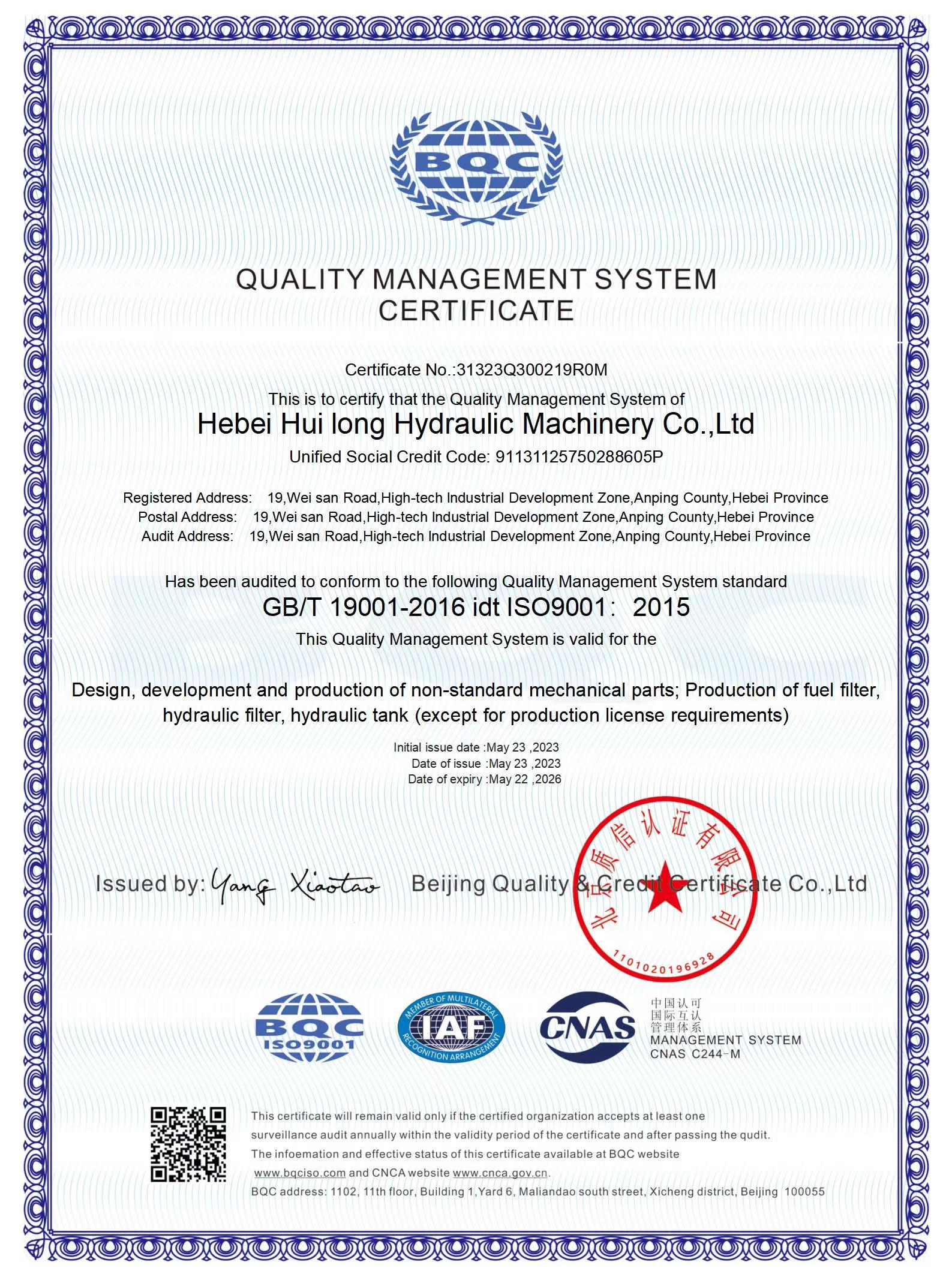 河北惠隆液壓機械有限公司主要生產回油過濾器,吸油過濾器,液壓過濾器,空氣過濾器等過濾產品我們一直致力于滿足市場的需求,為客戶的機械清潔運行提供優(yōu)良的產品。本公司設備精良,工藝精湛,檢驗檢測設備完善。產品全面按照ISO9001:2015質量管理體系生產,對采料,生產, 銷售實施全程質量控制,使產品質量各項性能指標均優(yōu)于國家標準企業(yè)每年均投入大量的資金,引進精湛的流水線和改進各種生產加工設備。